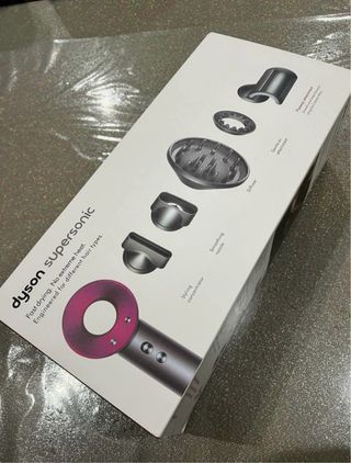 Asciugacapelli Dyson Supersonic nella colorazione rosa, completo di tutti i suoi accessori originali. - Custodia elegante per riporre l'asciugacapelli e gli accessori. - Accessori inclusi per diverse acconciature.