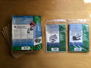 Prodotti compatibili con più modelli di aspirapolvere come da foto. Include: - 15 sacchi - 1 microfiltro CF1 - 1 microfiltro combinato CF2