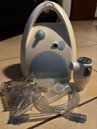 Nebulizzatore aerosol MediPresteril completo di accessori. - Maschera per adulti. -Mascherina per bimbi. -Inalatore bocca. -Inalatore naso. -Tubo flessibile. Tutti gli accessori sono stati sanificati. usato 2 volte, come nuovo. spedizione disponibile solo con in-post. NO BRT. NO CORRIERE. NO POSTE ITALIANE.