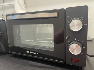 Mini forno elettrico Keyton in colore nero. Ideale per cucine piccole o per completare il tuo equipaggiamento. - Teglia inclusa. - Due comandi rotanti per il controllo di temperatura e tempo.