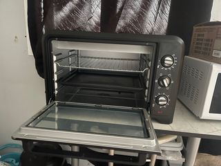 Forno elettrico compatto con funzione di convezione. Include vassoio e griglia. Controllo della temperatura e selettore di funzioni. Timer.