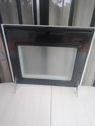 Porta del forno Teka completa, pronta per l'installazione. - Telaio esterno bianco. - Pannello frontale nero. - Finestra in vetro smerigliato.