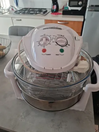 Forno convettore Medifit in buone condizioni. Controllo della temperatura regolabile fino a 250°C. Controllo del tempo. Ciotola di vetro resistente. (REGALO MINI FRIGGITRICE DA 1L).