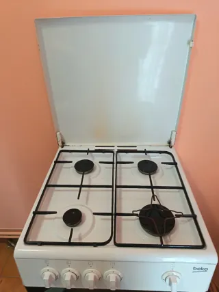 Fornello a gas Beko con forno. Quattro fuochi. Accensione elettronica. Valvole di sicurezza.