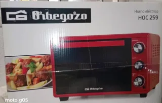 Forno elettrico Orbegozo in colore rosso e nero. Ideale per la tua cucina. Modello HOC 259. Design moderno e compatto. Porta con vetro.