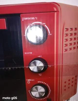 Forno elettrico Ariete per cuocere fino a due pizze contemporaneamente in pochi minuti. Design moderno e compatto, ideale per la tua cucina. - Colore rosso brillante. - Base in metallo lucido. - Manopole rosse per la regolazione. - Usata 3 volte. In perfette condizioni.