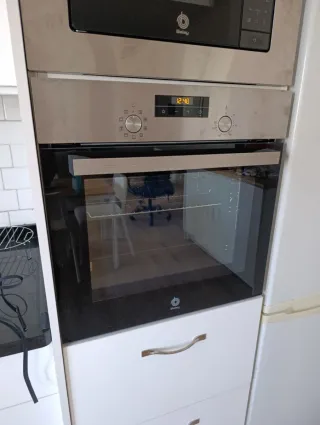 Set di forno e microonde da incasso in acciaio inossidabile. Design moderno ed elegante. Finitura in acciaio inossidabile. Marca: Bosch (forno) e Balay (microonde). FORNO BALAY QUADRO INOX HBN43W350E. MICROONDE BALAY 3CG6112.3. Il microonde ha meno di un anno.