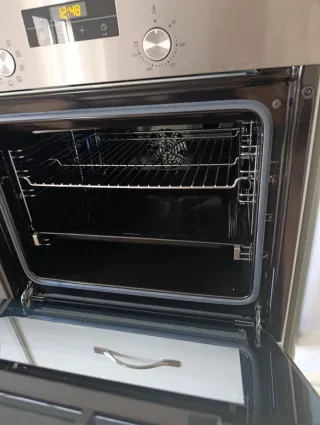 Forno da incasso, buono stato, è stato utilizzato poco ma è perfettamente funzionante, le piccole ammaccature che si vedono non sono di usura ma solo perché c'erano attaccate delle calamite. Misure standard