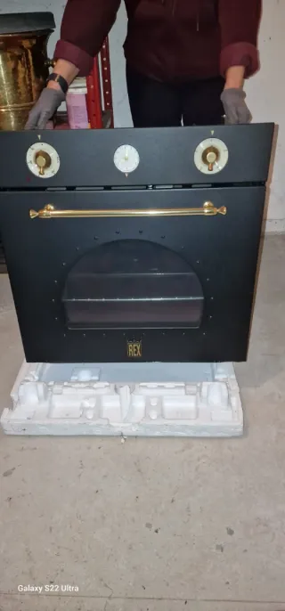 Forno da incasso REX FMT 50 G – Stile vintage – Come nuovo – Solo ritiro Vendo forno da incasso REX mod. FMT 50 G, originale stile vintage/classico con maniglia e dettagli in ottone. Il forno è in condizioni eccellenti, pulito, completo di manuale di istruzioni e griglie interne. Perfetto per cucine classiche, rustiche o in stile country. Caratteristiche principali: Marca: REX (Electrolux) Modello: FMT 50 G Alimentazione: 230 V – 50 Hz Potenza max: 2,05 kW Colore: nero opaco con finiture in ottone Timer e comandi analogici Forno ventilato Completo di griglia e teglia Dimensioni standard da incasso (vedi foto con manuale)