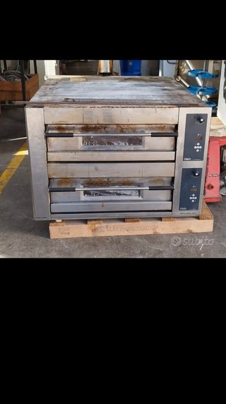 ULTIMA OFFERTA!!!!! Forno professionale per pizza a doppia camera, ideale per le attività ricettive. - Robusta struttura in acciaio inossidabile - Due camere di cottura indipendenti. - Pannello di controllo con termometri e selettori. - Base con supporti robusti
