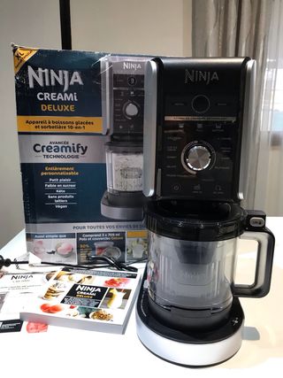 Macchina per gelati e bevande ghiacciate Ninja Creami Deluxe. - Tecnologia Creamify avanzata. - Completamente personalizzabile. - Ideale per preparare dessert a basso contenuto di zuccheri, chetogenici, senza latticini e vegani. - Include 3 vasetti e coperchi Deluxe da 709 ml.