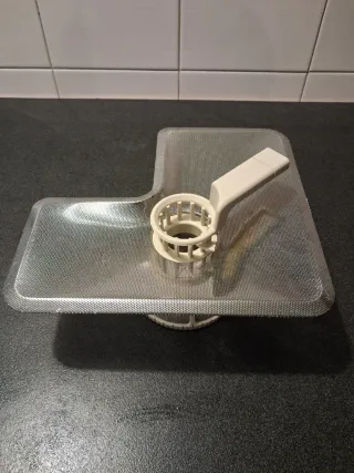 Ricambio usato originale per lavastoviglie Miele. - Filtro più microfiltro in metallo con maniglia della vasca di lavaggio in plastica. - Forma a L. Prezzo del pezzo nuovo 93 euro