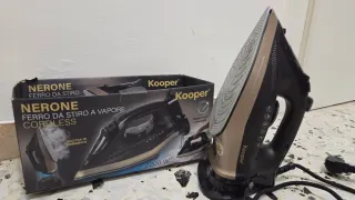 Ferro da stiro a vapore Kooper modello Nerone, con piastra in ceramica. - Potenza 2200 W. - Base e cavo rimovibili. - Design cordless.