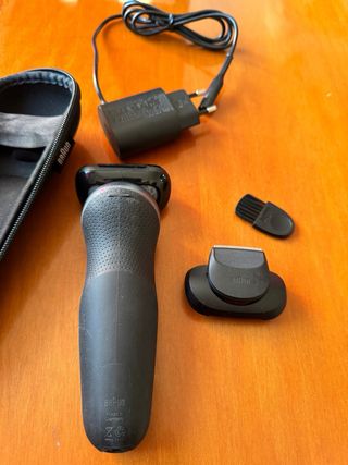 Rasoio elettrico Braun Serie 6 SensoFlex. - Colore grigio scuro. - Include custodia protettiva. - Include caricabatterie. - Include spazzolino per la pulizia. - Include accessorio rifinitore. Usato pochissime volte