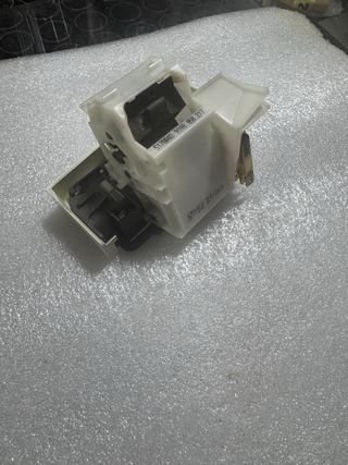 Ricambio per chiusura lavastoviglie Bosch, Siemens o Neff. Componente in plastica bianca con dettagli neri e metallici. Completa di maniglia. Codice originale 00165887