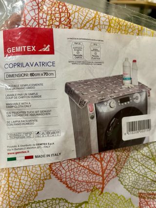 Copertura per lavatrice con un design a foglie colorate. Le dimensioni sono 60x70 cm. - Facile da pulire con un panno umido. - Adatta per lavatrici di dimensioni standard.