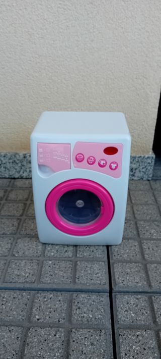 Lavatrice giocattolo in plastica, perfetta per il gioco dei bambini. - Colore bianco e rosa. - Oblò trasparente con bordo rosa. - Pannello comandi con pulsanti colorati e display. - Design moderno e compatto. 25x18 Funziona a batteria