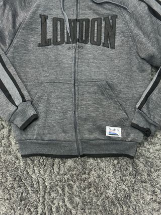 Felpa sportiva della collezione London Boxing in grigio melange con dettagli neri. Caratteristiche: • Zip frontale completa • Cappuccio foderato in nero • Logo “LONDON BOXING” applicato sul petto • Bande nere decorative sulle maniche • Etichetta Soho sul fondo • Tasche frontali • Taglia: L Composizione: 35% cotone, 65% poliestere Condizioni: Pari al nuovo, praticamente mai indossata. Perfetta per allenamento o uso casual. Istruzioni di lavaggio: lavare in lavatrice a freddo, non candeggiare, asciugare a bassa temperatura, stirare a bassa temperatura, lavare i colori scuri separatamente. #london #londonboxing #felpa #hoodie #zip #gri
