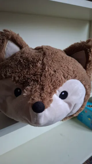 Morbido scaldapiedi a forma di volpe, perfetto per tenere al caldo. - Materiale in peluche soffice. - Design a forma di volpe. - Colore marrone e bianco.