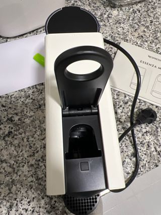 Macchina da caffè Nespresso Krups Essenza Mini in colore nero. Design compatto e moderno. Marca: Krups. Usata ma in ottime condizioni, il serbatoio dell'acqua è leggermente opaco. Questo è dovuto al lavaggio approfondito per la vendita, che ha esercitato pressione sulla plastica e ha fatto perdere parte del suo splendore (vedi foto).