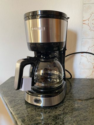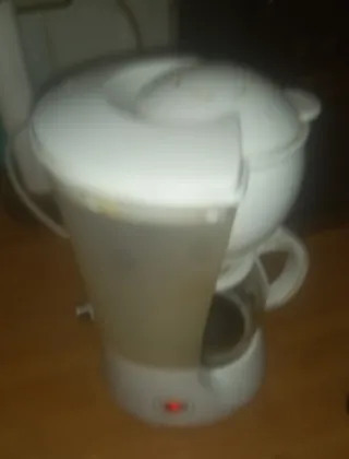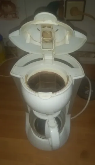 Macchina da caffè a filtro bianca per preparare il tuo caffè. Funziona bene, urge svuotare il ripostiglio. Design compatto. Ciotola di vetro inclusa.