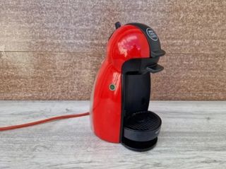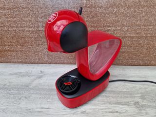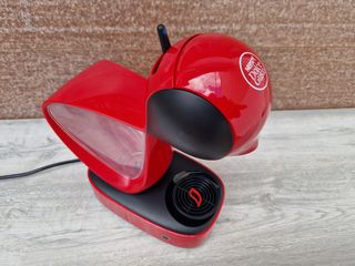 Macchina da caffè compatta del marchio Dolce Gusto in colore rosso. Design moderno ed elegante. Ideale per preparare caffè e altre bevande. Cavo di alimentazione incluso.