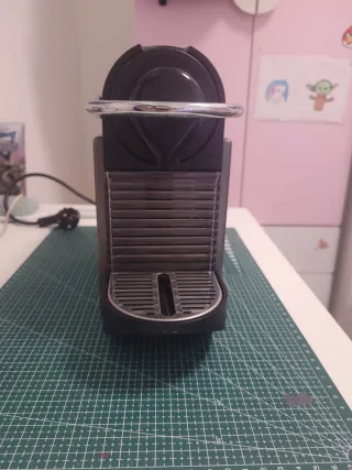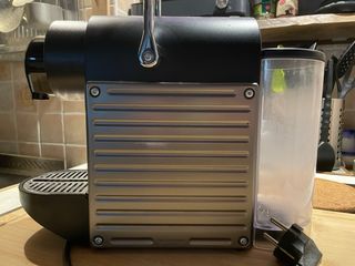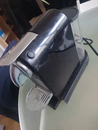 Macchina da caffè Nespresso in colore nero, con un design robusto e resistente. - Serbatoio dell'acqua trasparente. - Vassoio raccogli gocce. - Leva cromata. - Perde acqua, ma se si inserisce bene la tazza il caffè cade tutto dentro (i due getti che escono).