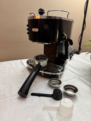 Macchina per caffè espresso DeLonghi Icona, finitura nera lucida. - Design elegante e compatto. - Manopole per la selezione delle funzioni. - Lancia vapore per cappuccini. - Vassoio raccogligocce rimovibile. Unico problema da segnalare, beccuccio monta latte perde acqua. Probabilmente c’è la guarnizione da cambiare