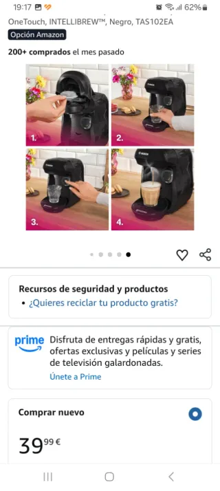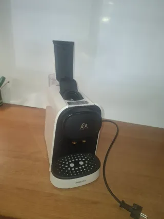 Macchina da caffè a capsule in bianco. Design moderno e compatto. UTILIZZATA SOLO 2 VOLTE!! Nuova vale 65 €. La consegno nella sua scatola con le istruzioni. - Serbatoio dell'acqua. - Vassoio raccogli gocce. - Pulsanti di controllo.