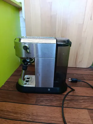 Macchina da caffè DeLonghi Dedica in colore argento e verde. Funziona tutto bene, il caffè corto non taglia automaticamente. - Design compatto ed elegante. - Include portafiltro e tre filtri. - Finitura metallica.