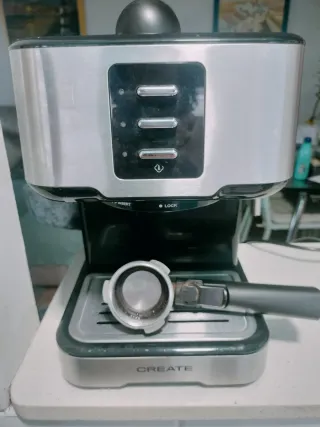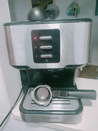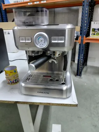 Macchina da caffè express del marchio CREATE, ideale per preparare il tuo caffè preferito a casa. Il suo design moderno si adatta a qualsiasi cucina. - Finitura in acciaio inossidabile. - Pannello di controllo con pulsanti. - Indicatore luminoso di accensione. - Monta il latte o l'acqua.