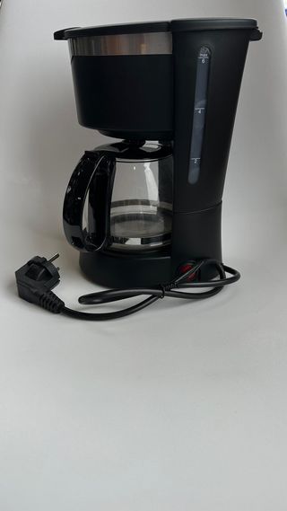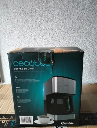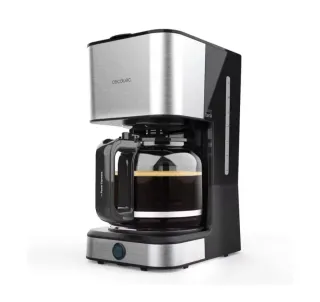 Macchina per caffè a goccia Cecotec con capacità per 6 tazze. Il suo design combina acciaio inossidabile e plastica nera. Prodotto NUOVO, prezzo originale 24,90€. - Caraffa di vetro. - Filtro permanente. - Piastra riscaldante. - Indicatore del livello dell'acqua.