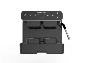 Macchina da caffè dal design moderno, adatta per un uso semiprofessionale. - Colore nero. - Finitura lucida. - Pannello comandi intuitivo.