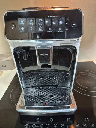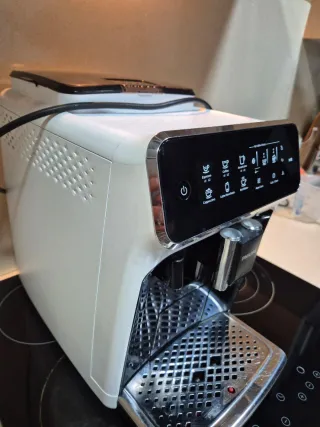 Macchina da caffè automatica Philips Serie 3200. Pannello di controllo touch con icone. Opzioni di caffè: Espresso, Caffè, Americano, Cappuccino, Latte Macchiato. Prepara anche acqua calda. Funzioni di pulizia: Aqua Clean e Calc/Clean. La macchina da caffè è in perfetto stato, si vende per acquistare l'ultima generazione.