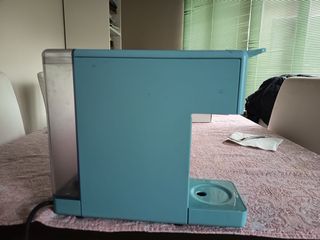 Macchina da caffè Cremesso in colore viola, con un design moderno e compatto. - Macchina per capsule. - Vassoio raccogli gocce. - Serbatoio dell'acqua. - Pulsanti di controllo.