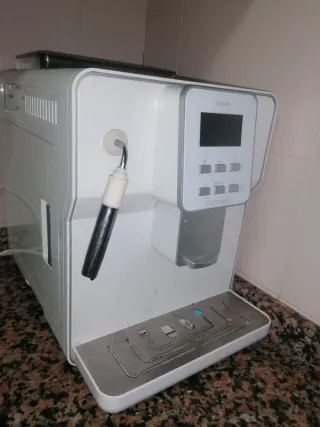 Macchina da caffè superautomatica Cecotec Cremmaet Compactccino Nero Rosa in perfetto stato. Design compatto ed elegante, ideale per qualsiasi cucina. Offre 19 bar di pressione per un caffè con buona crema e aroma, sistema Thermoblock per riscaldamento rapido e macinacaffè integrato con 5 livelli di macinatura (contenitore da 150 g). Serbatoio dell'acqua da 1,1 L e serbatoio del latte da 400 ml per preparare facilmente espresso, americano, cappuccino e caffè con latte. Altezza regolabile per diverse tazze. Facile pulizia, con autopulizia e vassoio estraibile. Ideale per gustare caffè appena macinato a casa.