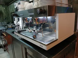 Macchina per caffè espresso professionale a due gruppi, in buone condizioni. Ideale per caffetterie o attività simili. - Macchina in acciaio inossidabile. - Due gruppi di caffè indipendenti. - Pannello di controllo intuitivo. - Manometri per il controllo della pressione.