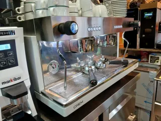 Vendo questa macchina da caffè professionale Ascaso, un serbatoio per la ristorazione prodotto a Barcellona. È il modello Barista a due gruppi, ideale per attività con un elevato volume di lavoro che cercano qualità di estrazione e stabilità termica. La macchina è interamente realizzata in acciaio inossidabile e materiali di prima qualità (ottone/acciaio), niente plastica nei componenti critici. Caratteristiche principali: • 2 Gruppi di caffè: Permette di lavorare rapidamente. • Pulsanti volumetrici: Programmabili per caffè corto, lungo, doppio, ecc. • Lancia del vapore e uscita dell'acqua calda: Potenza sufficiente per montare il latte senza perdere pressione.