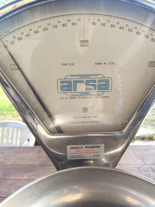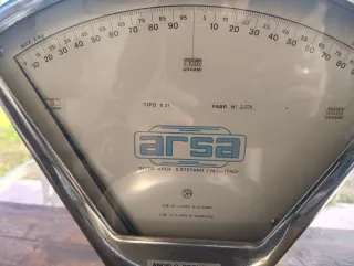 Bilancia meccanica Arsa, modello Tipo K21, con una capacità massima di 2 kg. - Design classico e robusto. - Quadrante graduato in grammi e chilogrammi. - Indicazione FABR. N°. 2074. - Ditta ARSA S.STEFANO (VA) - ITALY. La bilancia non è mai stata utilizzata, è rimasta imballata in cantina per molti anni e riporta solo delle piccole tracce di usura (del tempo). Ritiro a mano a Bernate Ticino (MI) o Magenta. No spedizione.