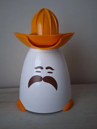 Spremiagrumi elettrico Don Miguel, nuovo e ancora nella sua scatola originale. - Design divertente con cappello e baffi. - Colore bianco e arancione. - Certificazione Intertek GS.