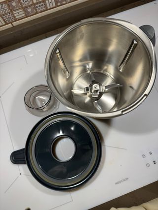 Boccale originale per Bimby TM5, mai utilizzato. - Materiale: acciaio inossidabile. - Colore: argento e nero.