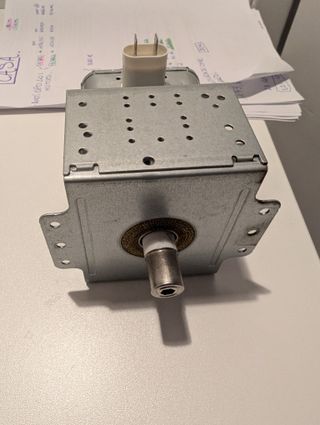 Vendo pezzi di ricambio per forno a microonde – Perfettamente funzionanti Smontati da un microonde sostituito solo a causa di ruggine interna, quindi tutti i componenti sono in ottimo stato e perfettamente funzionanti. Disponibili come da foto. Lista dei componenti: 1. Trasformatore per microonde Modello MD-801EMR-1 – 230V, 50Hz, CLASS 220 Prodotto da MD Microwave Oven Manufacturing Co., Ltd. 2. Magnetron Modello WITOL 2M219J 3. Condensatore ad alta tensione Marca Meter Star – CQC - Capacità: 1,00 μF - Tensione: 2100 V AC (H.V.) – 50/60 Hz - Tipo modulo: CH85 - Tolleranza: ±3% - Connettori: 4,8 x 0,5 mm 4. 4. Motore sincrono