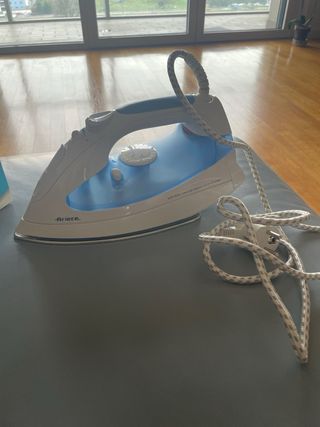 Ferro da stiro Ariete Steam Iron con una potenza di 2000 Watt. - Colore bianco e blu. - Piastra per stirare. - Cavo di alimentazione.