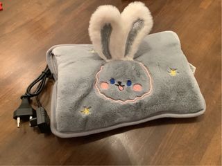 Scaldamani elettrico grigio con un simpatico design coniglietto con orecchie morbide. - Morbido rivestimento in peluche. - Dettagli ricamati a forma di stelle. - Cavo di alimentazione incluso.