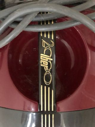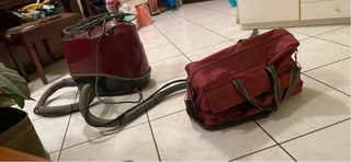 Aspirapolvere Iber 2000, fermo da un po' di tempo. Necessita di pulizia dal calcare. Completo di tutti gli accessori e con ferro da stiro mai usato. - Colore bordeaux e nero. - Tubo flessibile grigio. - Borsa da trasporto in tessuto bordeaux.
