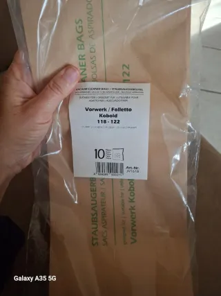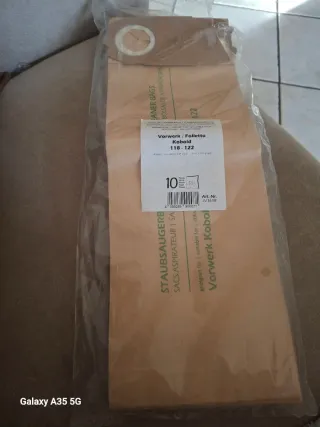 Confezione di sacchetti per aspirapolvere Vorwerk Folletto. - Modello: Kobold 118-122 - Quantità: 9 sacchetti (Manca un sacchetto dalla confezione perché è stato danneggiato al momento dell'apertura della confezione .) Nuovi mai usati. - Articolo: JV1618