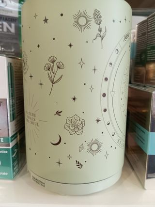 Bellissimo diffusore di oli essenziali, a forma di cilindro, color verde menta chiaro. Perfetto per creare un'atmosfera rilassante. - Diffusore ad ultrasuoni - Design primaverile - Motivi floreali e celestiali