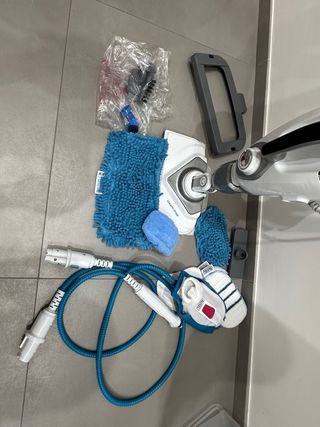 Lavapavimenti a vapore Black+Decker completo di accessori. - Serbatoio dell'acqua rimovibile. - Cavo di alimentazione lungo. - Accessori per diverse superfici.