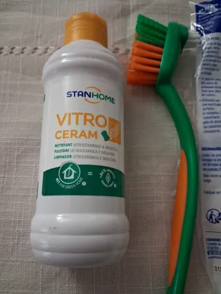 Prodotto per la pulizia di piani cottura in vetroceramica e a induzione. - Detergente specifico per piano cottura in vetroceramica. - Formato liquido. - Marca Stanhome.