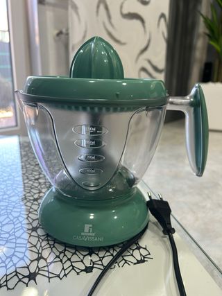 Vendo spremiagrumi elettrico marca Berger Casa Vissani, colore verde menta. È in ottime condizioni ed è perfetto per preparare succhi di frutta freschi. - Spremiagrumi elettrico di colore verde menta - Marca: Berger Casa Vissani - Capacità: 1200ml, 1000ml, 700ml, 450ml - Facile da usare e pulire